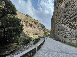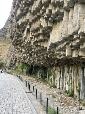 Die Symphonie der Steine ist ein Naturdenkmal in der Provinz Kotayk, etwa 30 km von Yerevan entfernt. Es befindet sich in der Garni-Schlucht und besteht aus fast 50 Meter hohen, symmetrischen sechs- und fünfeckigen Basaltsäulen. Wir schlendern den gepflasterten Weg entlang und sind fasziniert von der Dimension dieses Naturphänomens.